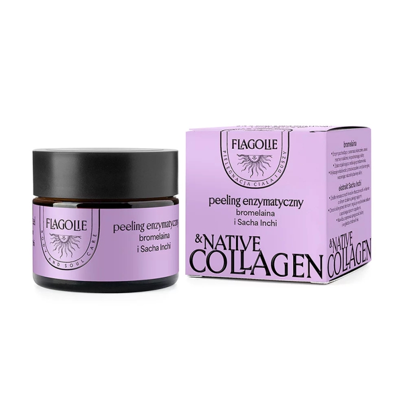 Kolagen natywny, papaina, ekstrakt z jabłek, witaminy A, B, C i K, kwasy owocowe aha, sacha inchi, witamina b, bromelaina, ekstrakt z granatu.